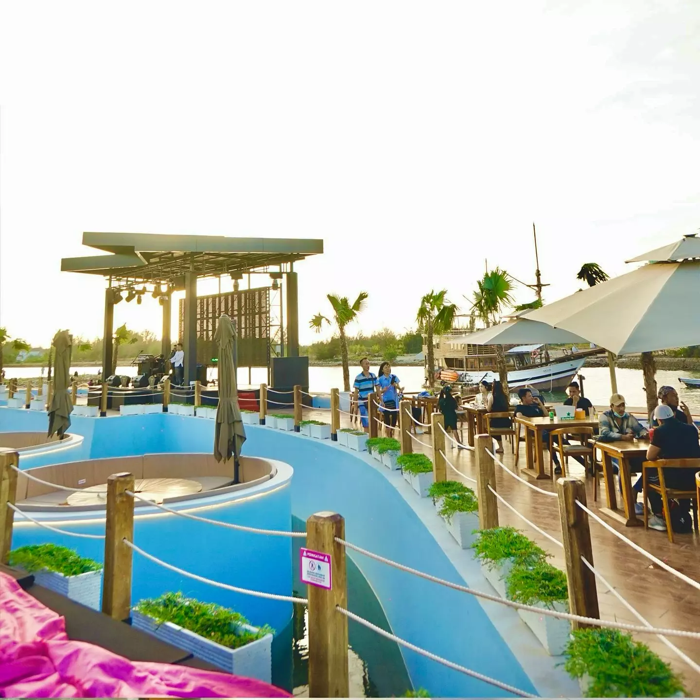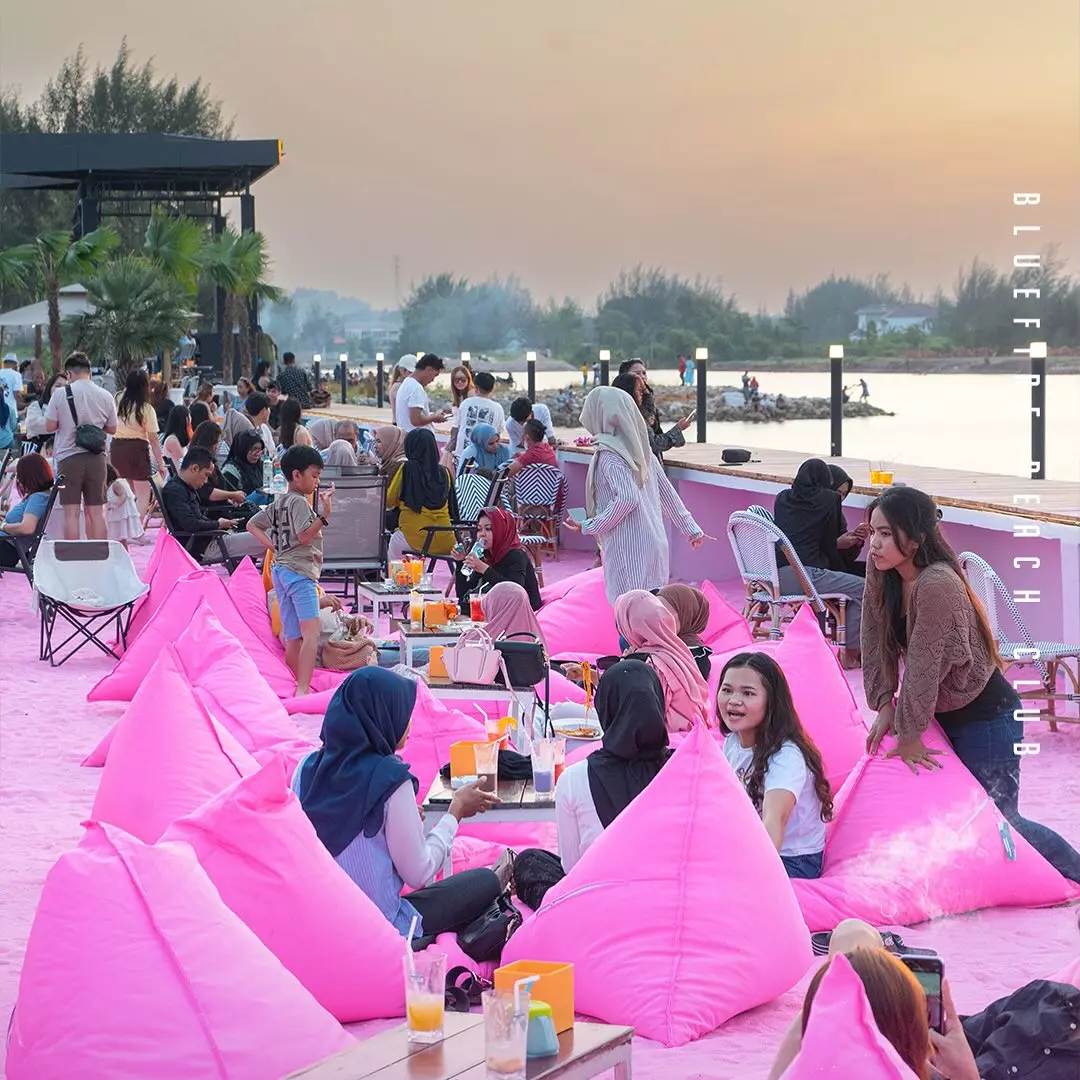 Blue Fire Beach Club baru dibuka pada 28 Juni 2024 lalu. Blue Fire Beach Club menawarkan suasana rekreasi yang ramah dengan alunan musik yang mengalun santau dan menenangkan Tempatnya begitu santai dan sangat friendly dengan soft musik yang menenangkan hati. “Blue Fire Beach Club juga menyediakan berbagai fasilitas untuk penyelenggaraan pesta sesuai dengan kebutuhan,” Satu hal yang unik dan nyentrik dari Blue Fire Beach Clubini adalah pasir berwarna pink. Pasir tersebut bahkan secara khusus didatangkan dari China. Selain bisa bermain pasir, pengunjung juga bisa berendam di kolam sambil menikmati suasana pantai.
